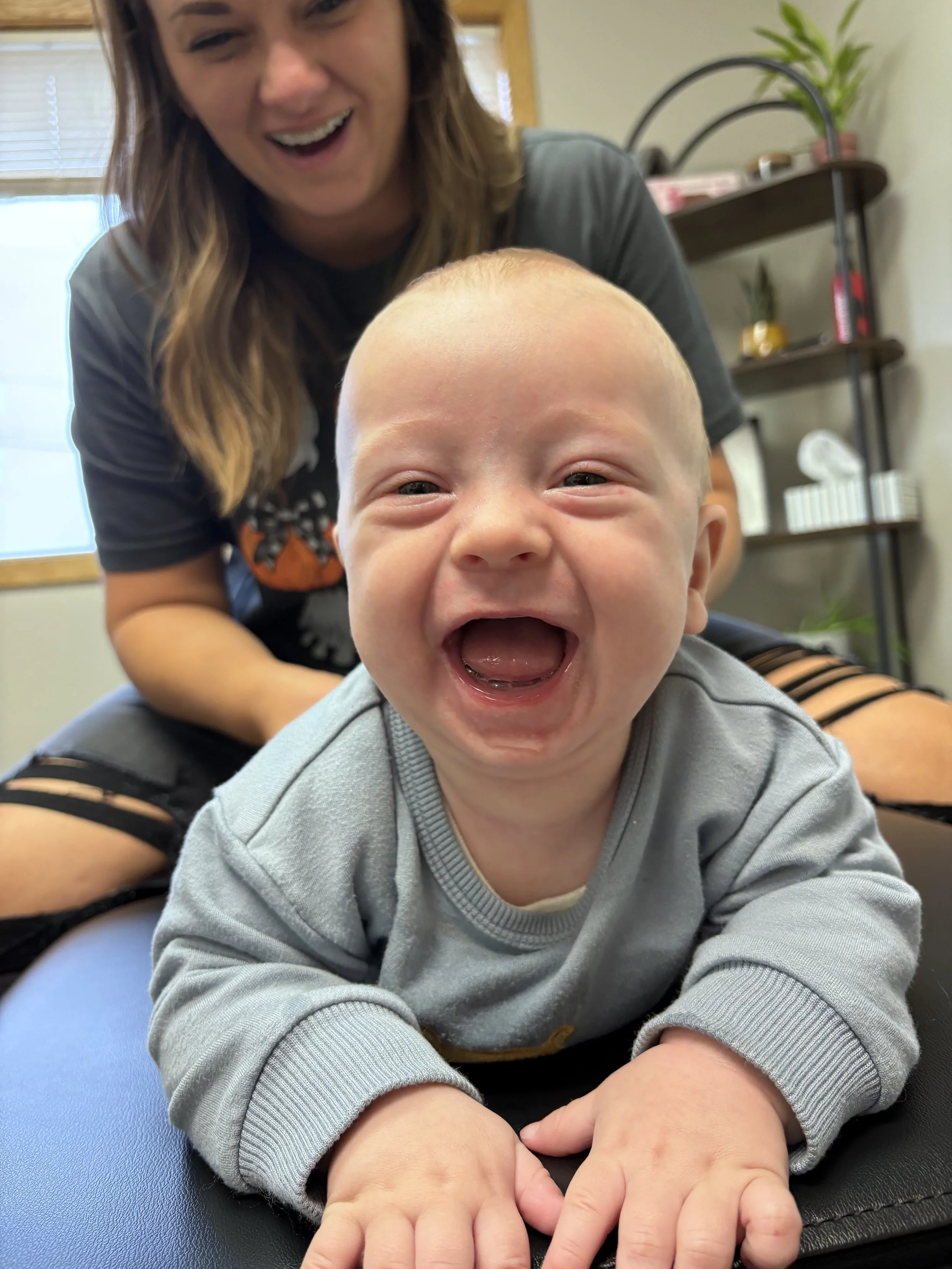 Infants can be adjusted just moments after birth. Our extensive training in pediatric care allows us to offer gentle and safe adjustments from that very first breath! There is no better gift than offering your baby the best start to life with chiropractic care!